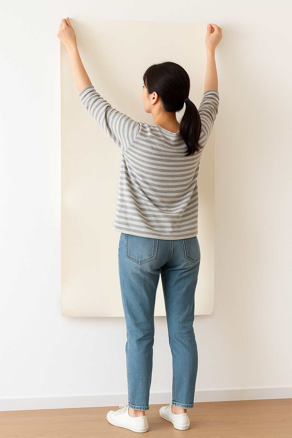벽에 붙일 때는 마스킹테이프로 모서리만 고정하세요.