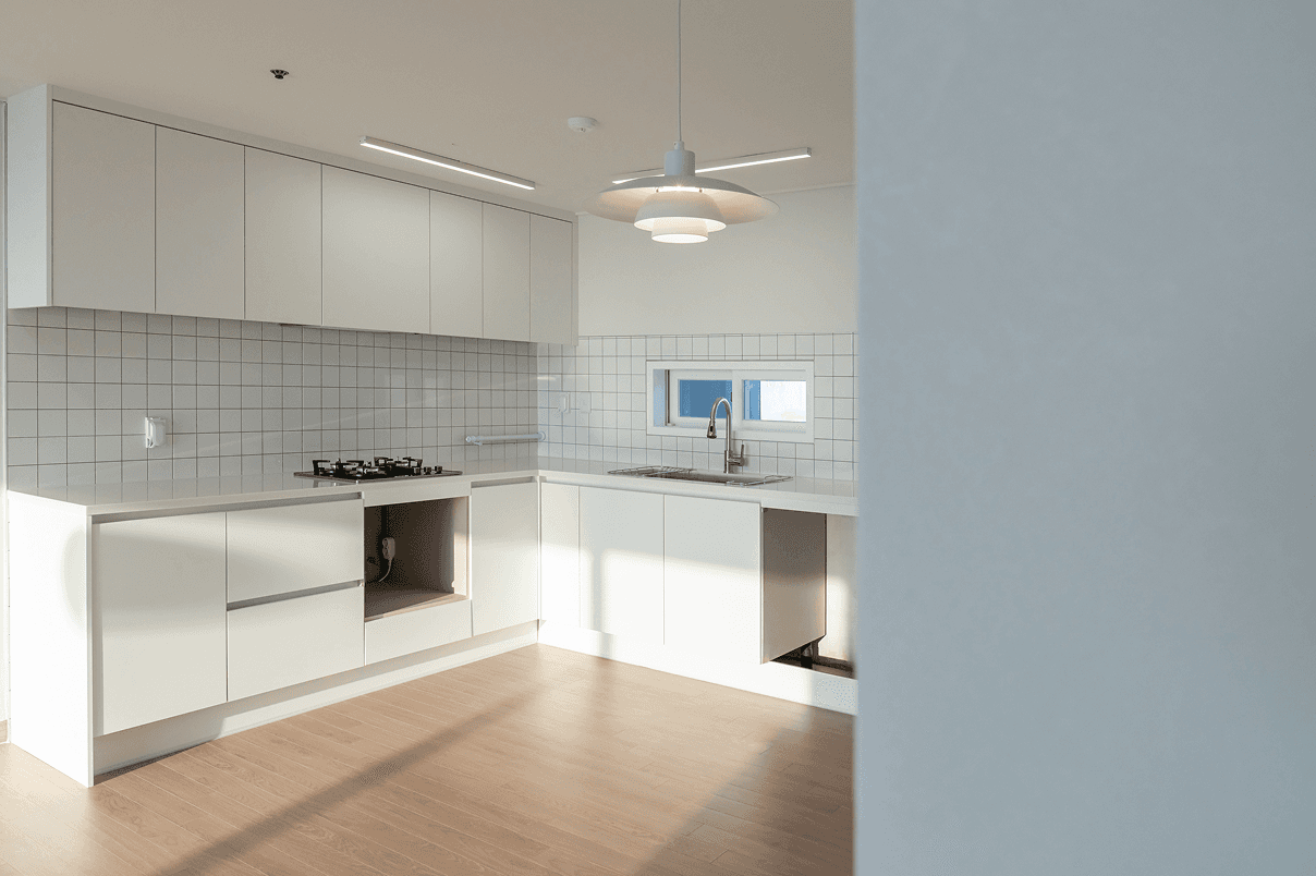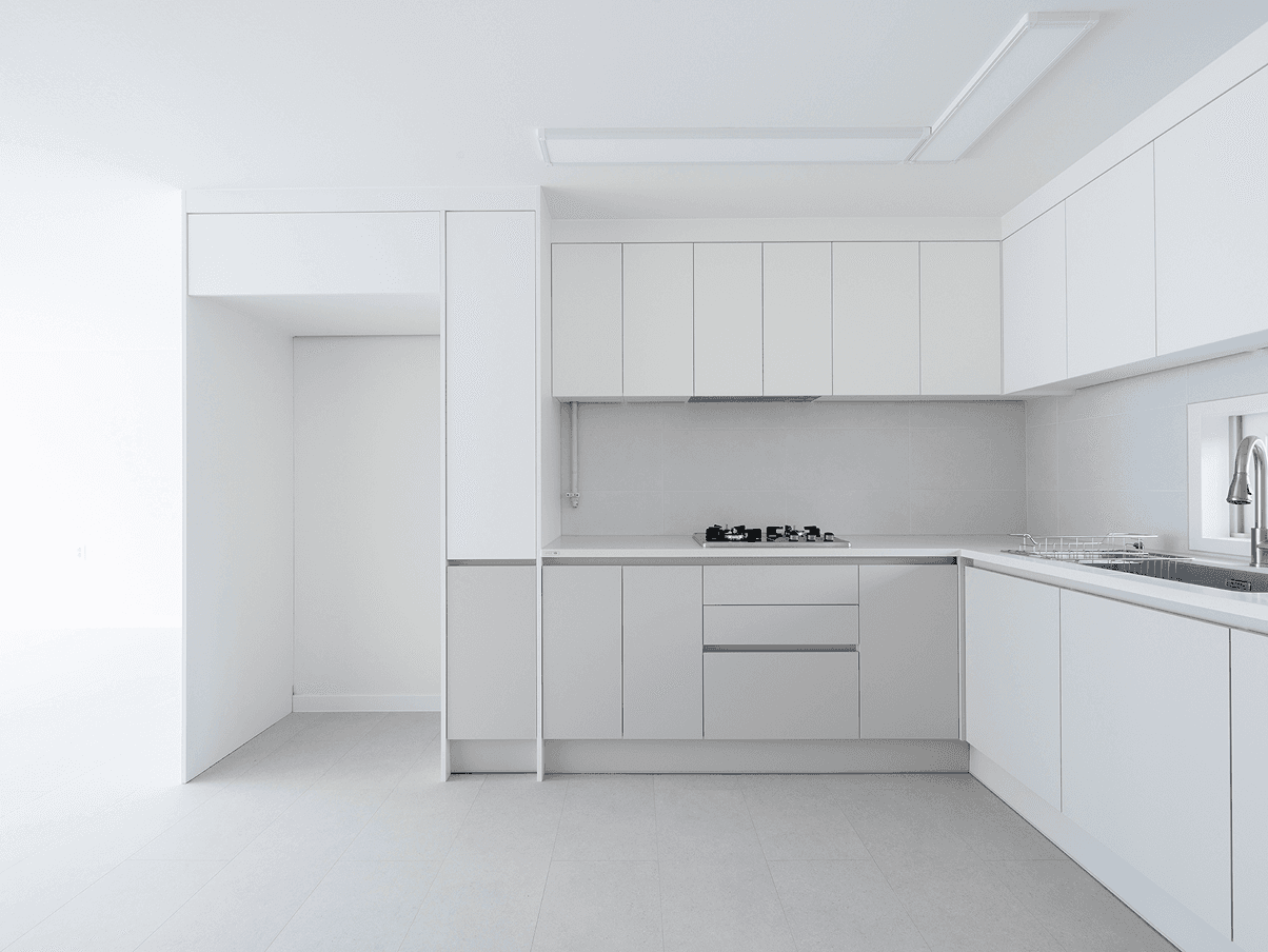 세련된 포세린 베이스의 톤앤톤 화이트 인테리어