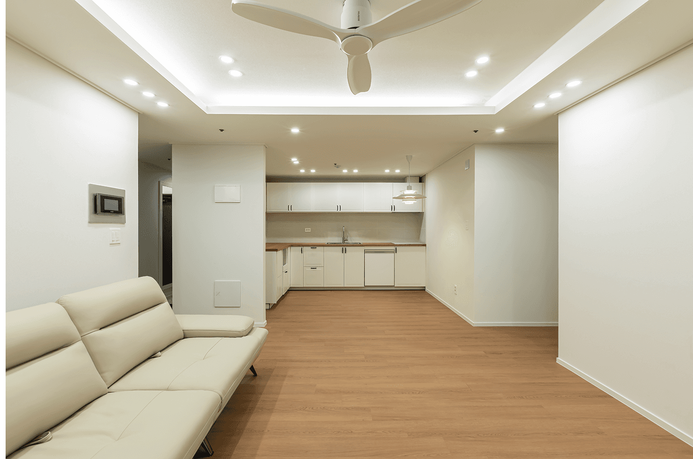따뜻한 우드톤 베이스의 화이트 크림 인테리어